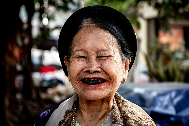 The look was achieved using iron filings mixed with vinegar, creating a black lacquer that coated the teeth. While it may seem shocking now, it was viewed much like elaborate hairstyles or makeup, an elegant symbol of status and beauty.
