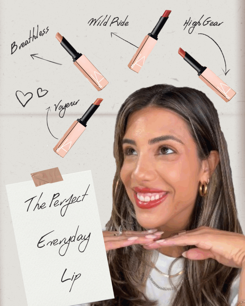 And to bring it all to life, we’re using one of our favorite formulas for everyday shine and comfort: NARS Afterglow Sensual Shine Lipstick, shown here in four shades that suit every mood and moment.