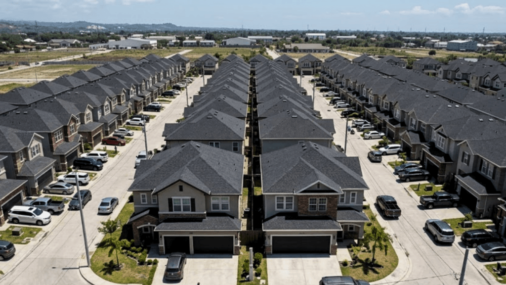 Someone posted a photo of their neighborhood on Reddit and typed just one line: “Something is so off about these homes.” They weren’t wrong. The image showed a row of large houses crammed together, each one identical to the last. Steep, towering roofs. No trees. A dirt patch where a lawn should be. Commenters stared at it and reached for the same word: uncanny valley. The term usually refers to humanoid robots that look almost real. Nobody expected it to apply to a suburb.