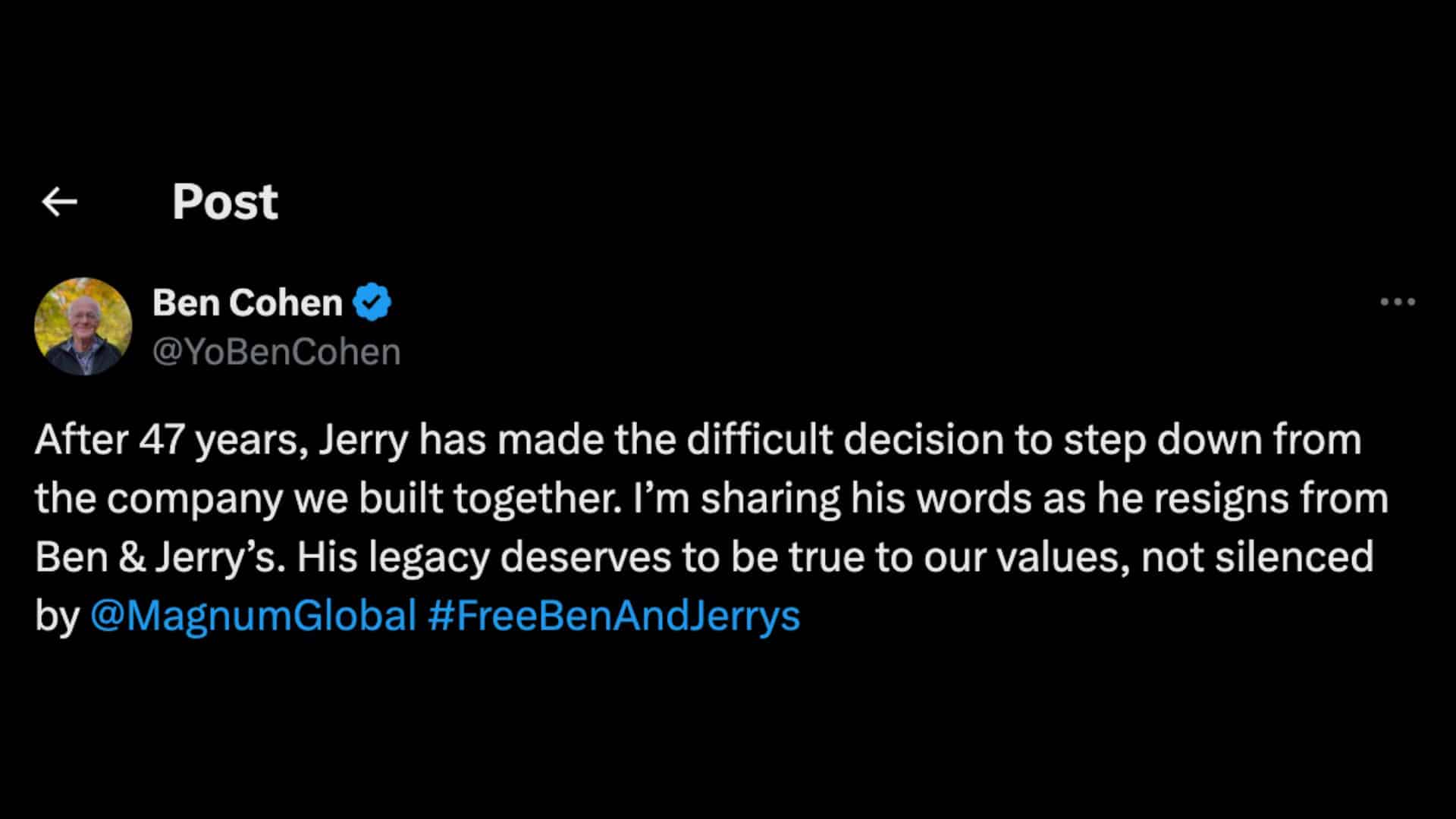 Magnum, also under the ownership of Unilever, put out a statement disagreeing with Jerry’s sentiment. It reads, “We disagree with his perspective and have sought to engage both co-founders in a constructive conversation on how to strengthen Ben & Jerry’s powerful values-based position in the world.”