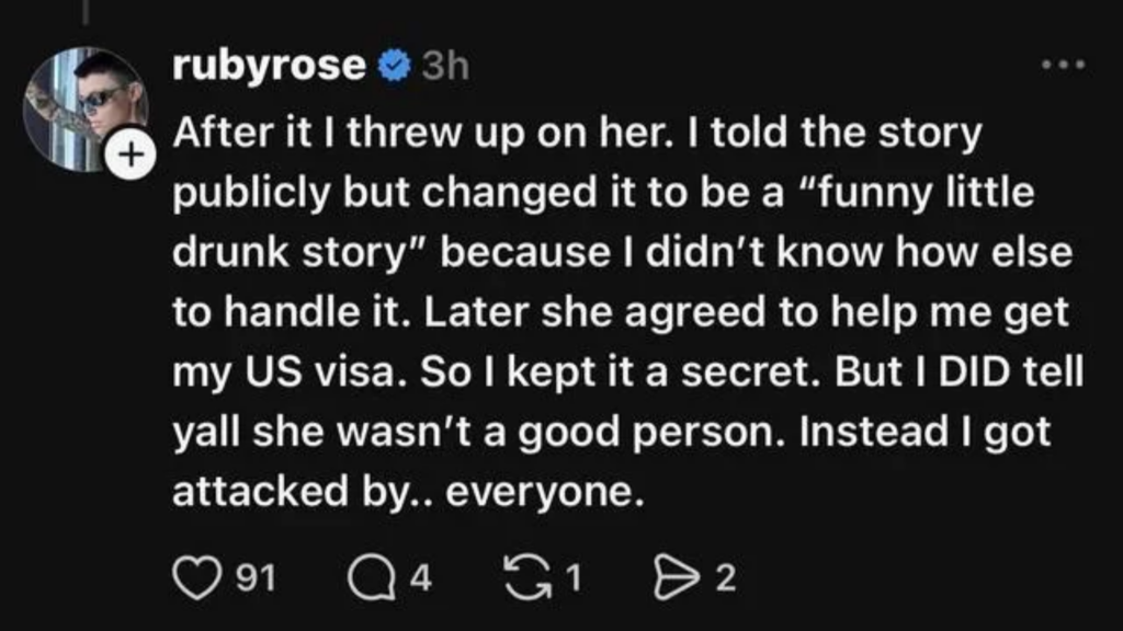 Ruby Rose is an Australian actress and model who gained international recognition for her role in Netflix’s Orange Is the New Black beginning in 2015. Before that, she had built a significant public profile in Australia as a television presenter and model. Her accusation landed with particular weight not only because of her public profile but because of the specificity of the claim, a named location, a named city, and a named year. Whether or not the allegation is ultimately substantiated, the precision of the details Rose provided is what moved it from a social media comment to a matter that authorities concluded warranted formal investigation.