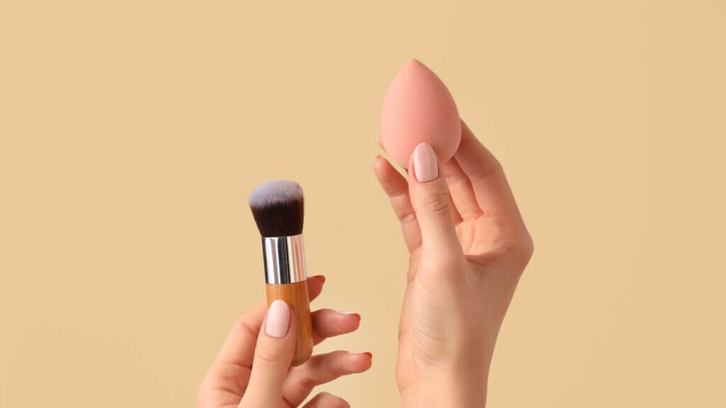 Fingers work great for warming and pressing in lightweight products. Damp sponges are ideal for blending foundation and concealer while keeping the finish natural. If you use brushes, opt for fluffy ones that won’t pack on too much product.